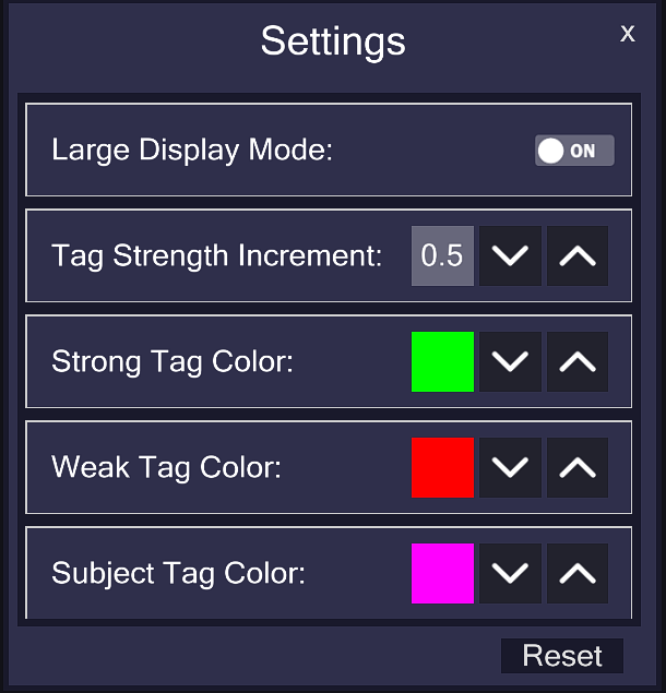 The number values adjacent to the tags are a strength indicator. This can be adjusted by clicking on the up and down arrows beside them.